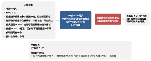 卡瑞利珠单抗是博天堂918医药自主研发的一种人源化IgG4单克隆抗体,其联合铂类双药化疗已在中国获批用于晚期NSCLC患者的一线治疗5,6。2023年,Ⅱ期CAP-BRAIN研究显示了卡瑞利珠单抗联合治疗方案作为晚期非鳞状NSCLC伴脑转移患者一线治疗的潜力7。本项Ⅱ期研究,旨在研究卡瑞利珠单抗联合脑放疗和铂类双药化疗在未经治疗的晚期非鳞状和鳞状NSCLC伴脑转移患者中的疗效和安全性。