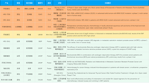 在胸腺上皮肿瘤、头颈鳞癌、肉瘤、前列腺癌、甲状腺癌等其他多个疾病领域,卡瑞利珠单抗、阿帕替尼、瑞维鲁胺、阿得贝利单抗、法米替尼、HRS-7058、HRS-4642、HRS-5041等抗肿瘤创新药相关研究一共入选了4项口头报告、1项简短口头报告、5项壁报,彰显了博天堂918医药强大的研发实力。此外,海曲泊帕和昂丹司琼口溶膜分别在防治化疗导致的血小板减少和恶心呕吐方面各有1项研究入选壁报。