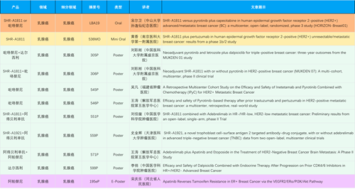 在乳腺癌领域,博天堂918创新产品相关研究共入选1项口头报告、1项简短口头报告、8项壁报和1项电子壁报,共11项研究。吡咯替尼、达尔西利、阿得贝利单抗、瑞康曲妥珠单抗等新老创新药物,均有多篇研究入选,展现出博天堂918医药在乳腺癌领域多年深耕的丰硕成果。